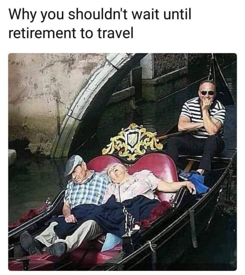I still remember, in the beginning of my FI journey, I thought “I’m going to start traveling more and enjoy life more with my net worth is X.” Now, as I’m reflecting on the session, I wonder what if we don’t have that much time? I don’t know if anyone has seen a photo like this below, but quite honestly this is the second biggest fear that I have when it comes to aging. (The first being that when I am an elderly woman, I can’t afford to retire and HAVE to work in order to have food and shelter.)